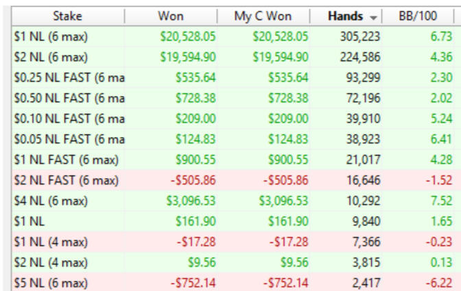 My last 850k hands from NL100 to NL600.